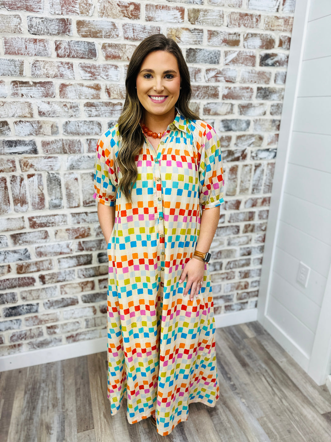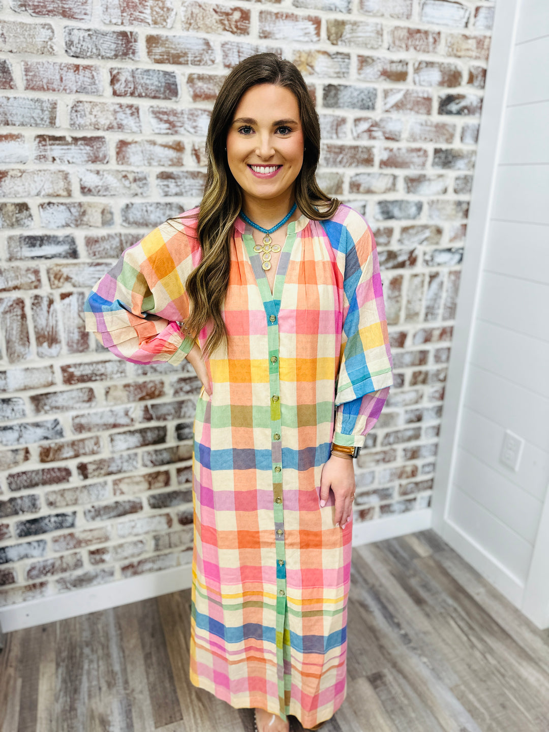 RAINBOW PLAID CLEO MIDI DRESS