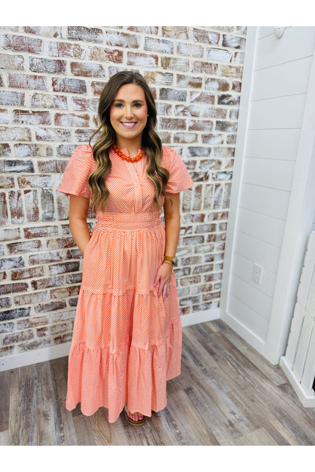 Orange Striped Midi Dress