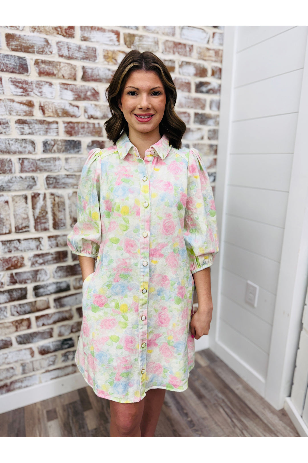 Floral Watercolor Denim Dress