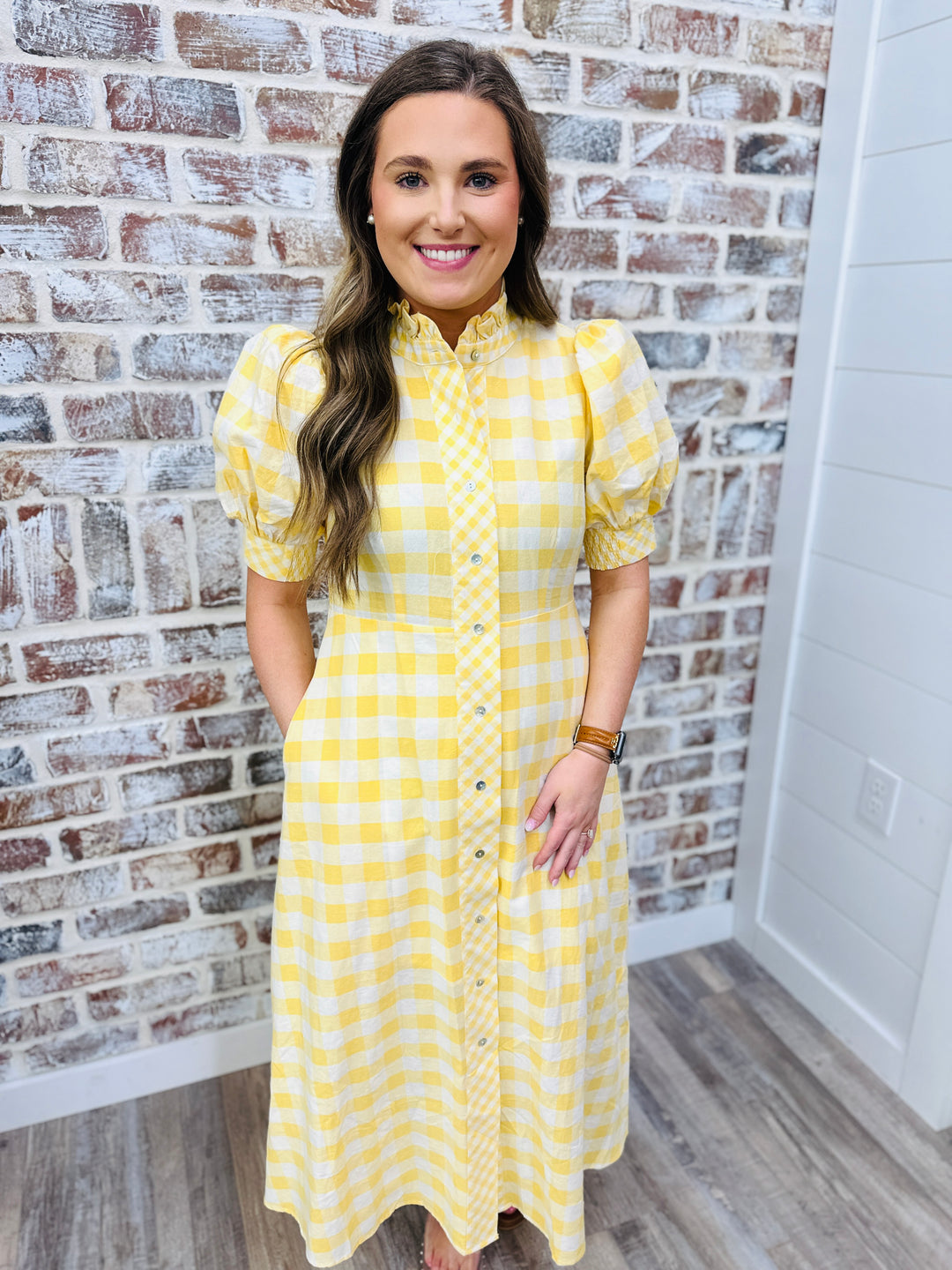 Lemon Gingham Midi Dress