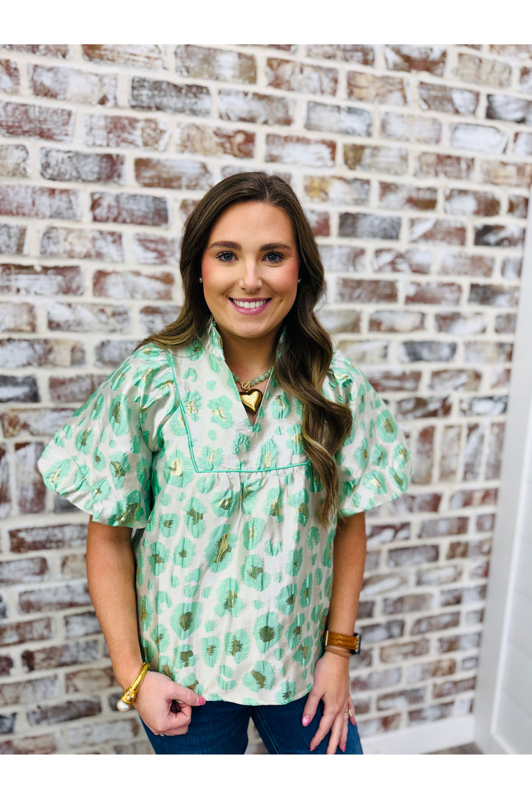 Mint & Gold Leopard Love Top