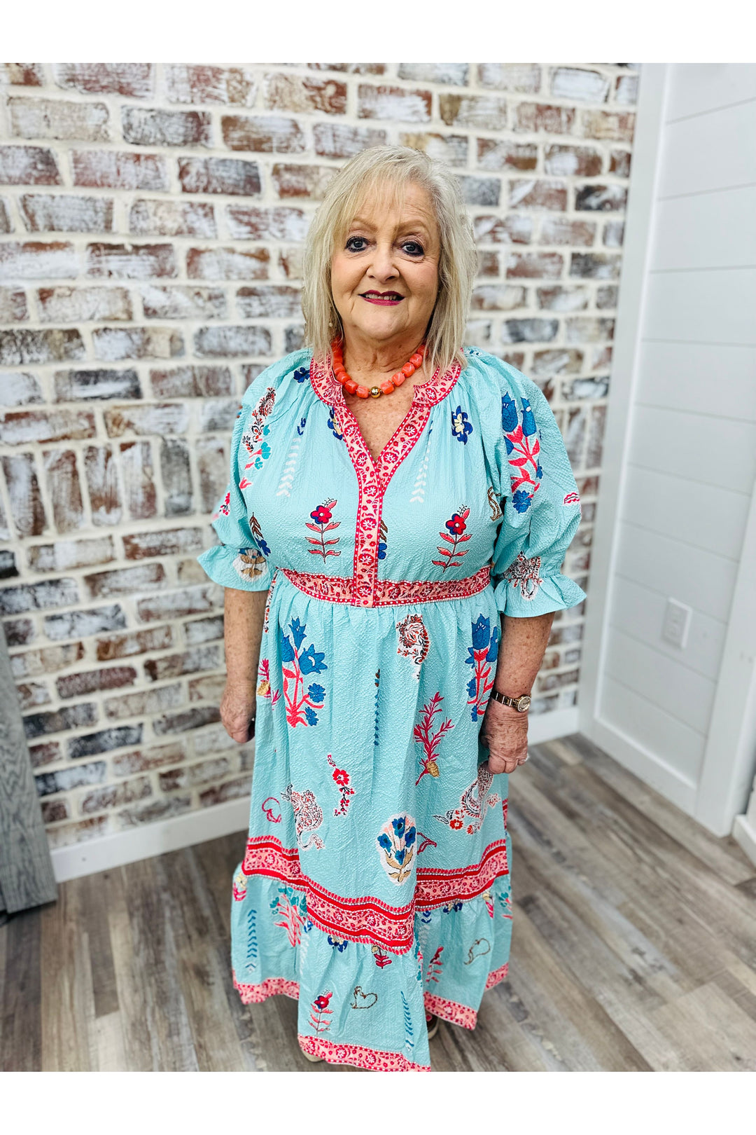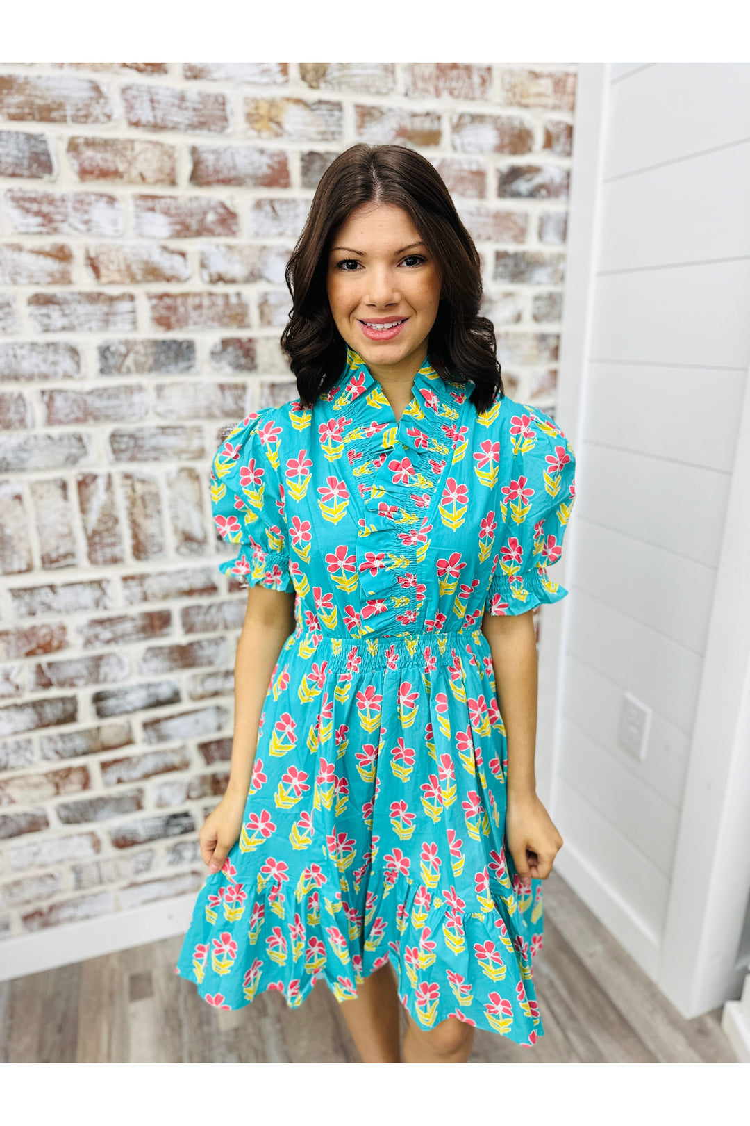 Teal Bloom Ruffle Dress