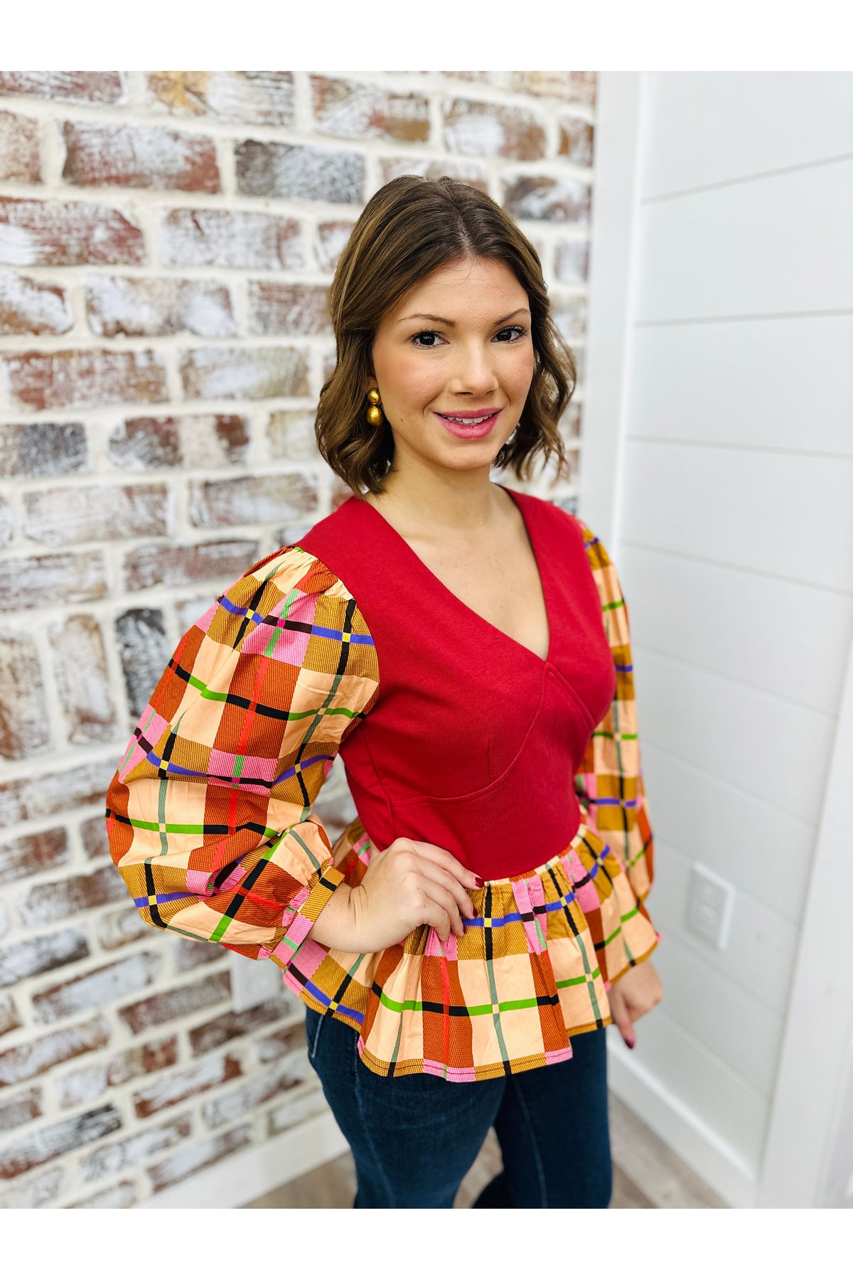 Spice up your wardrobe with this Multi Plaid Woven Top! The rich rust color adds warmth and the plaid print adds a touch of fun. Perfect for any occasion, this top will make you stand out in style. (No need to be plaid out!)