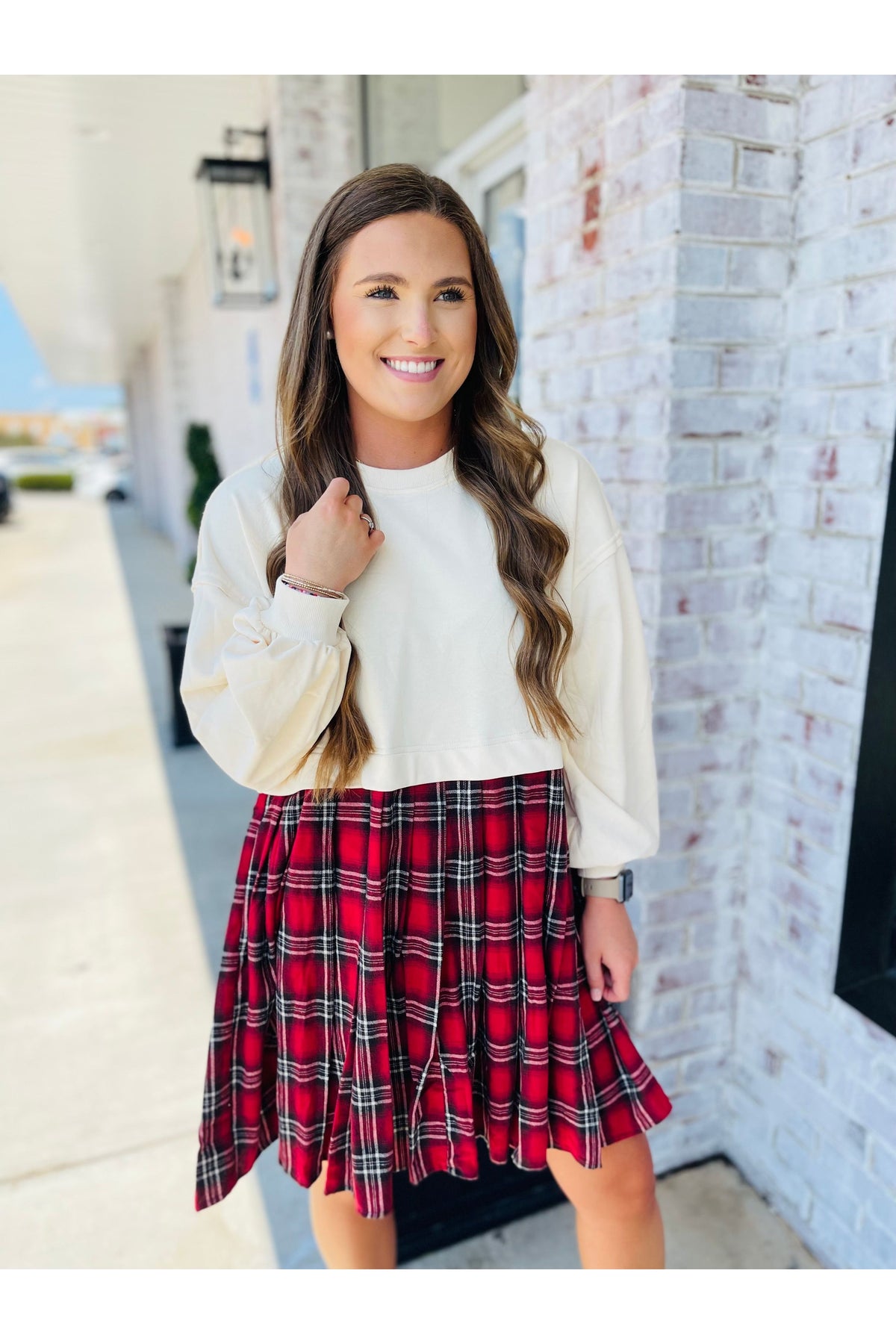 The Plaid Hearts Dress features a two tone look of solid + plaid details! The heart detail on the back makes the perfect touch to this look!