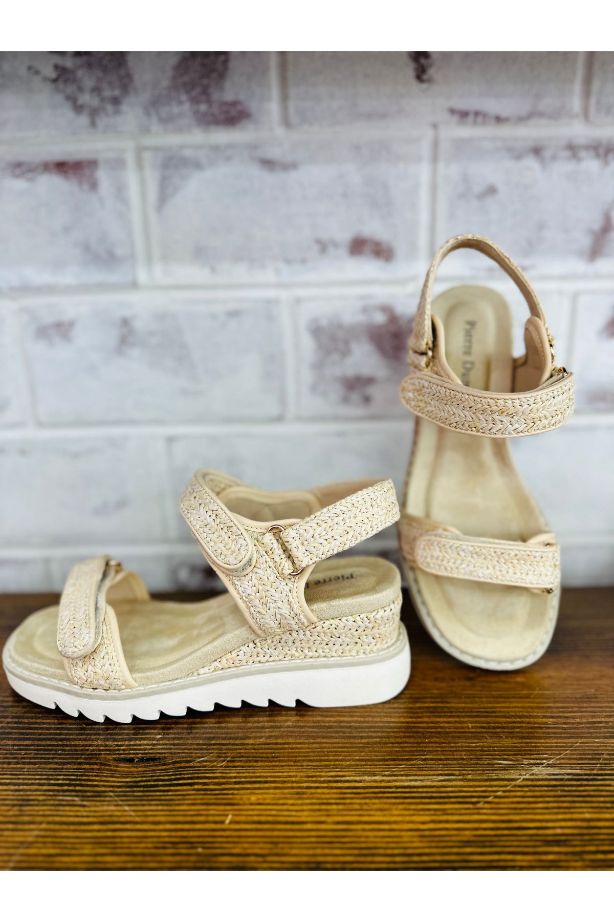Theses wedges features 2 velcro straps for easy adjustments. A low wedge with a cushioned insole for all day comfort. These wedge sandals will be a perfect choice for any outfit.