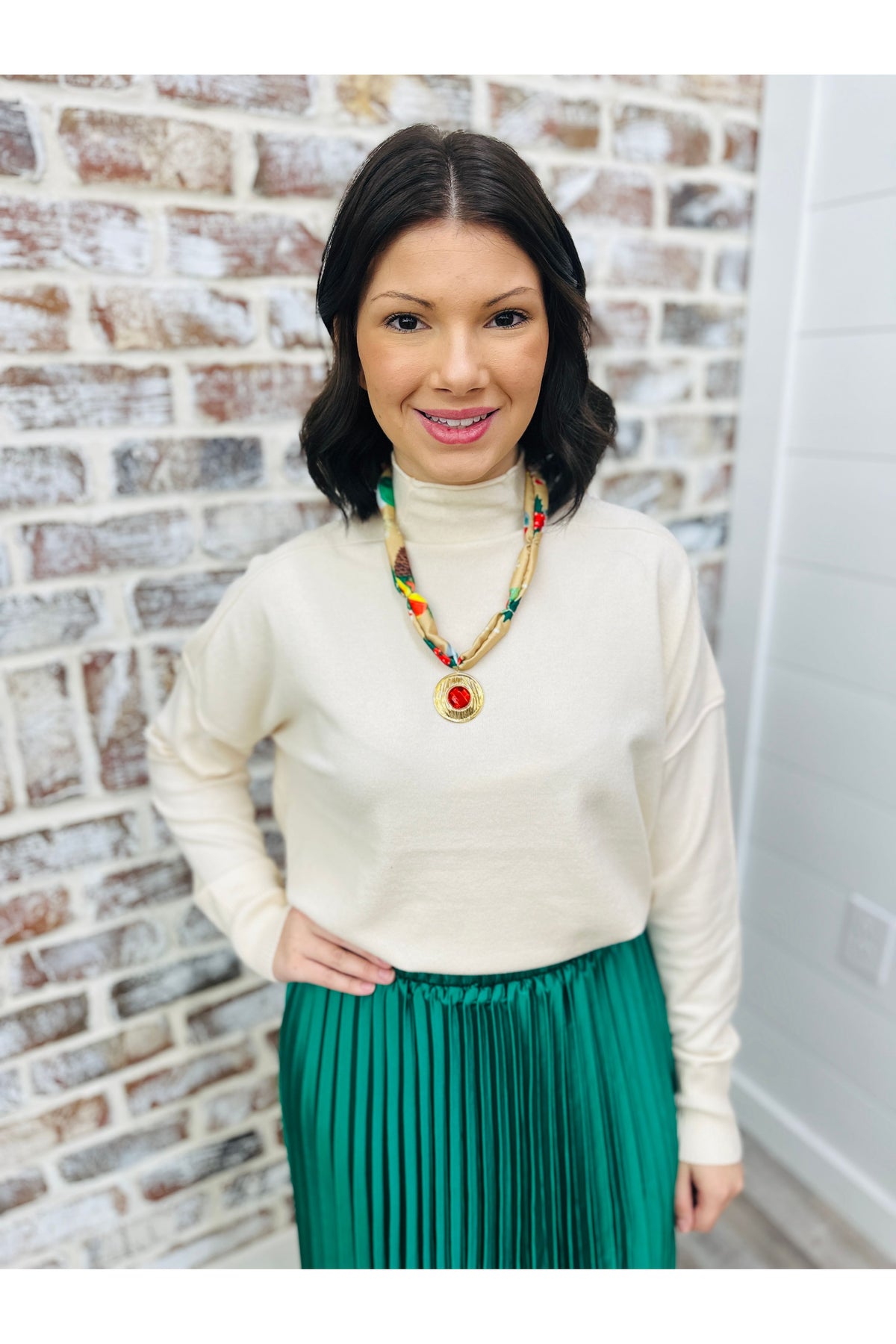 Get ready to elevate your look with our Cream High Neck Sweater! This fun and versatile top is the perfect addition to any outfit. Made from a soft cream fabric, it will keep you warm and stylish all day long. Don't miss the chance to add this wardrobe staple to your collection!