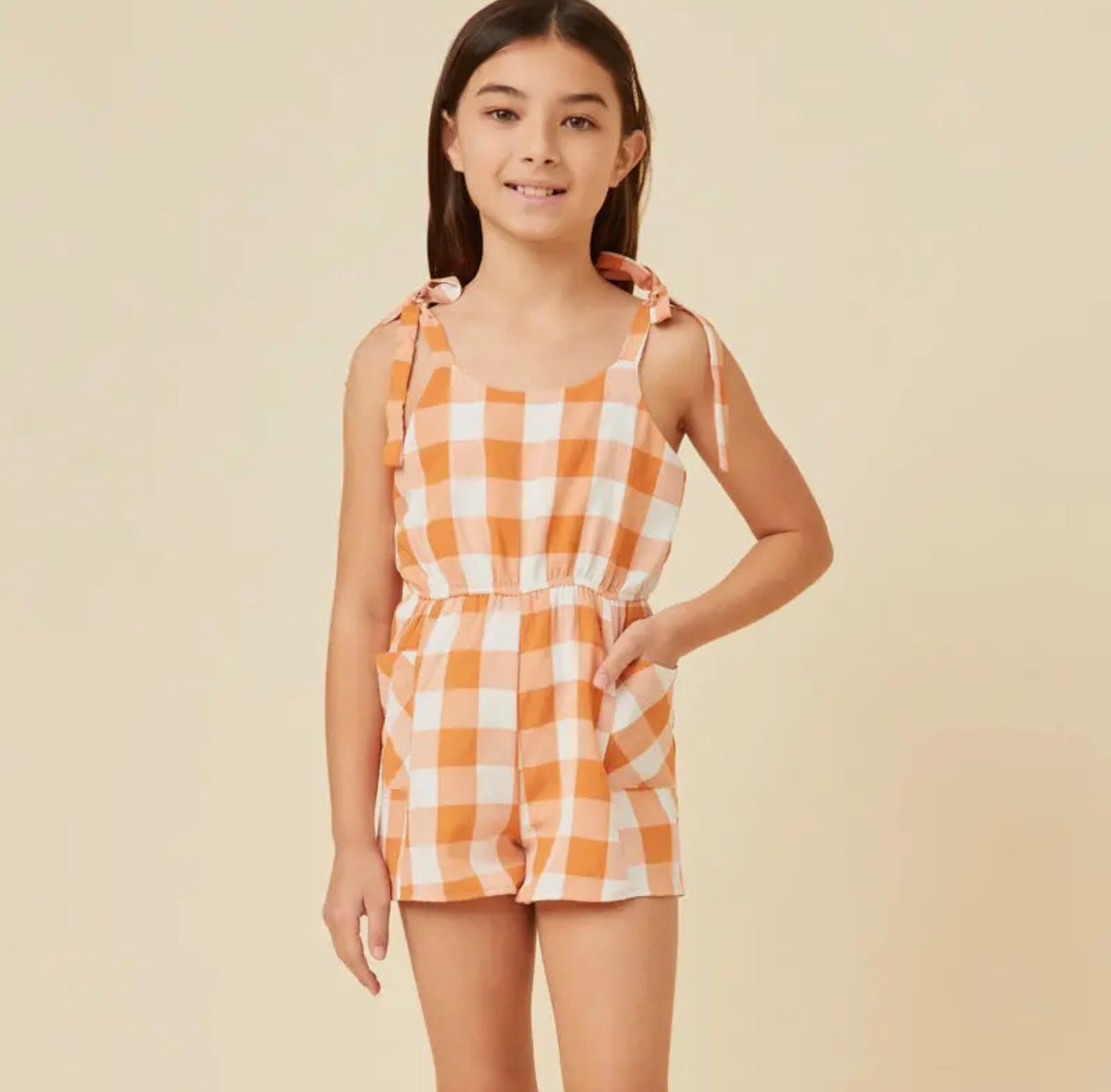 Girls Orange Checkered Romper