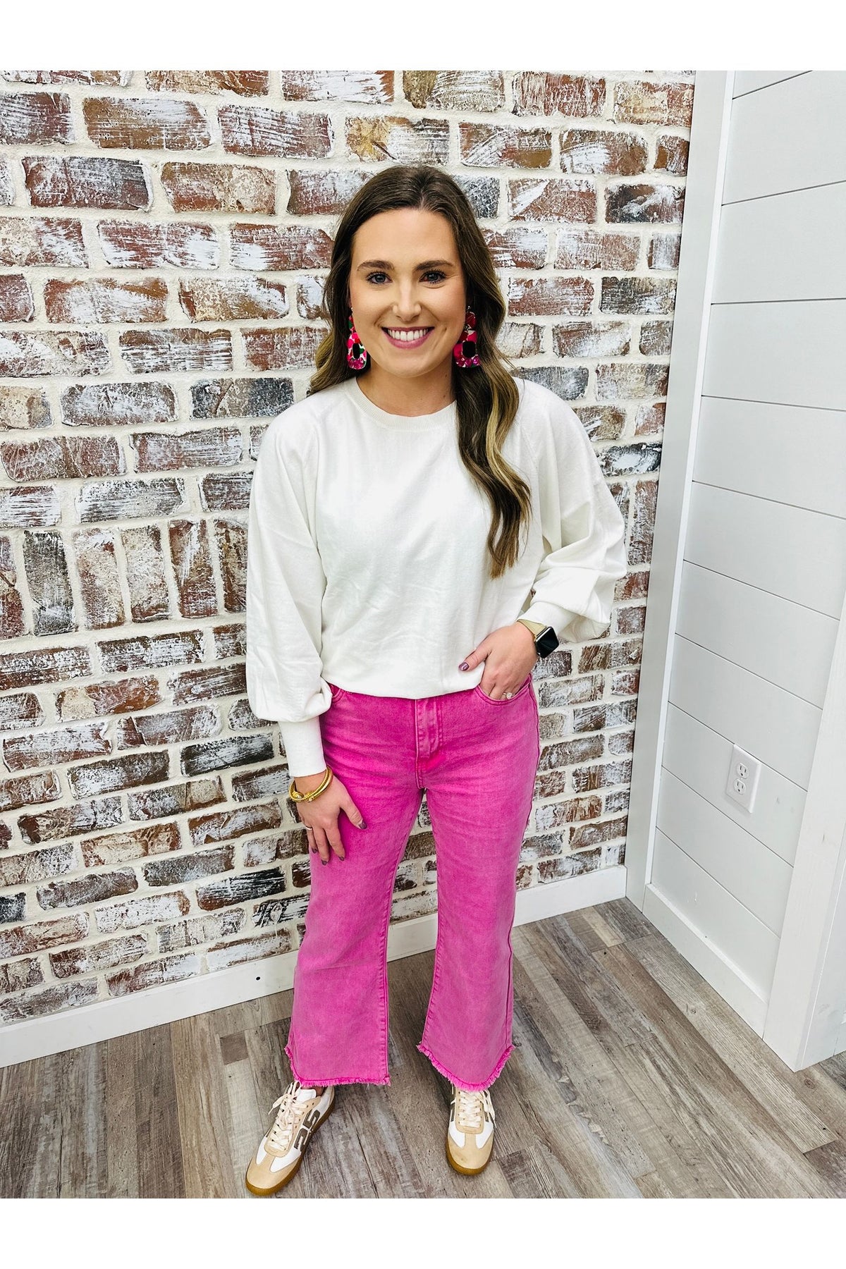 Get ready to turn heads in our Pink Acid Wash High Waisted Fray Bootcut Pants! These pants are not your average pink - they're hot pink! Embrace your bold and playful side with this statement piece. Perfect for standing out at any event or simply brightening up your everyday look. Trust us, everyone will be asking where you got these favorites from.