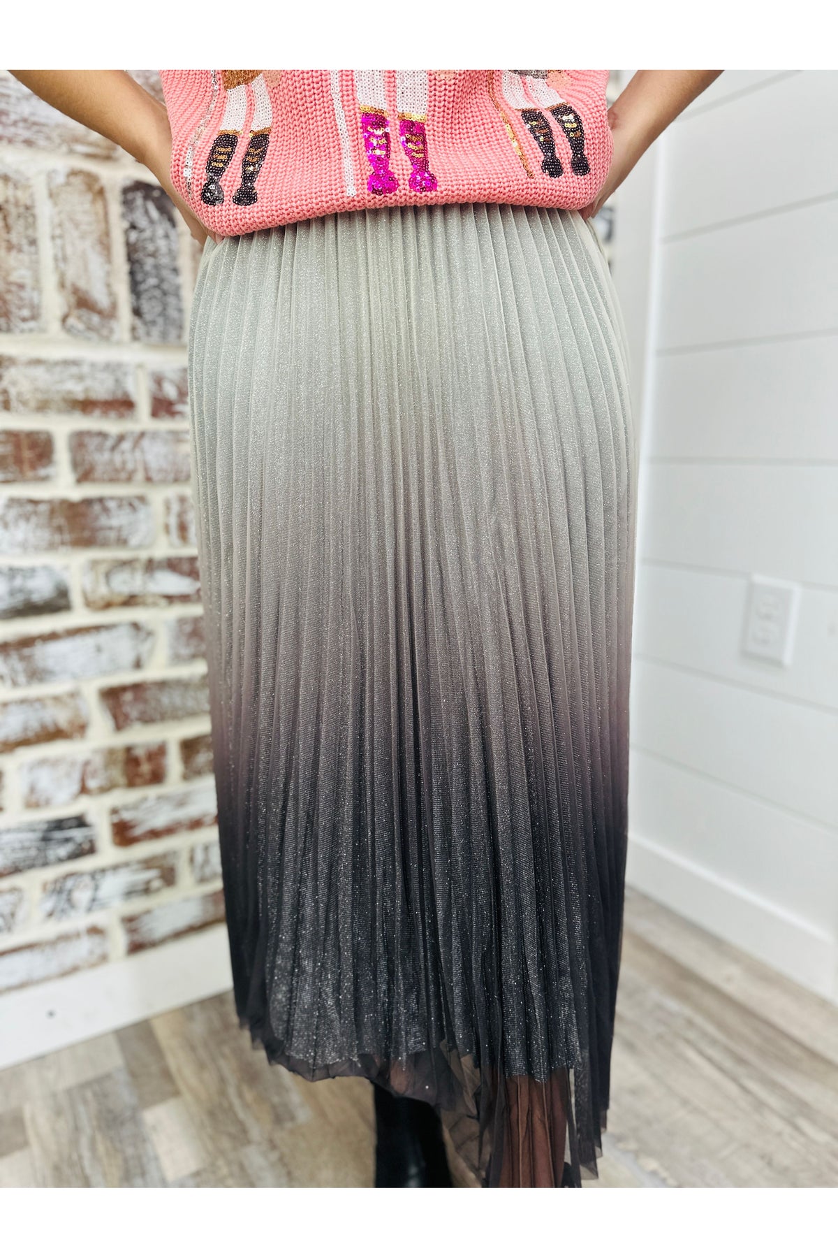 Get ready to shine in our Shimmer & Shine Midi Skirt. This skirt is perfect for any festive occasion with its glitter pleated sheer fabric that adds a touch of fun to any outfit. Don't be afraid to sparkle and stand out from the crowd with this unique and playful piece.
