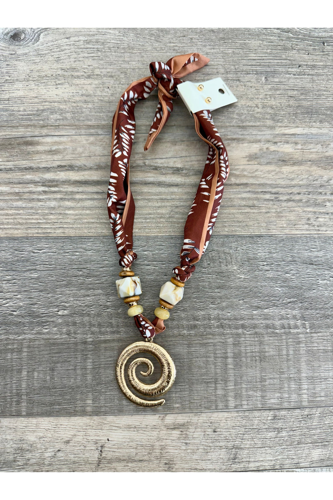 Fall Leaves Scarf Necklace With Swirl Pendant