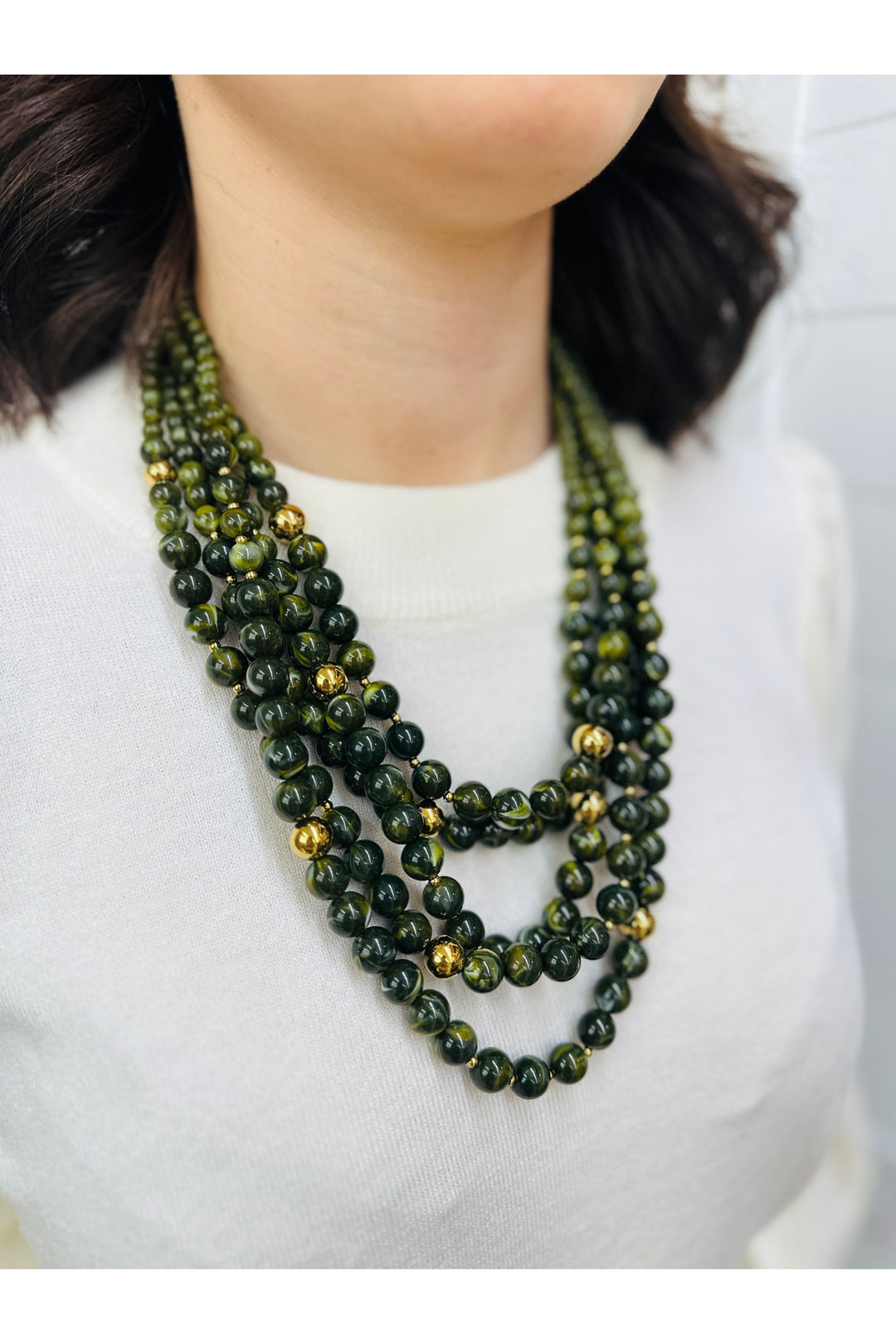Olive Beaded Layer Necklace