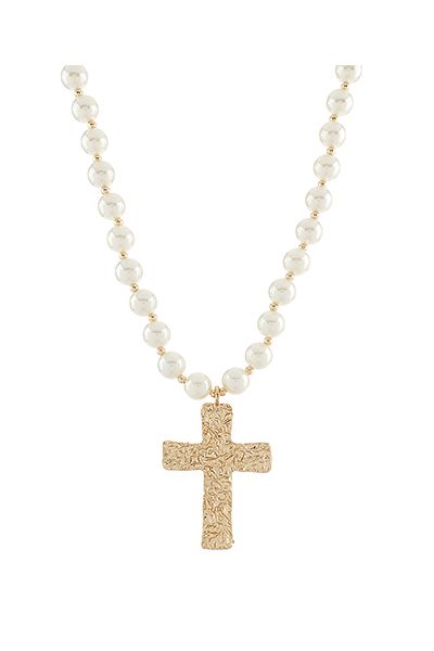 Hammered Cross Pearl Necklace