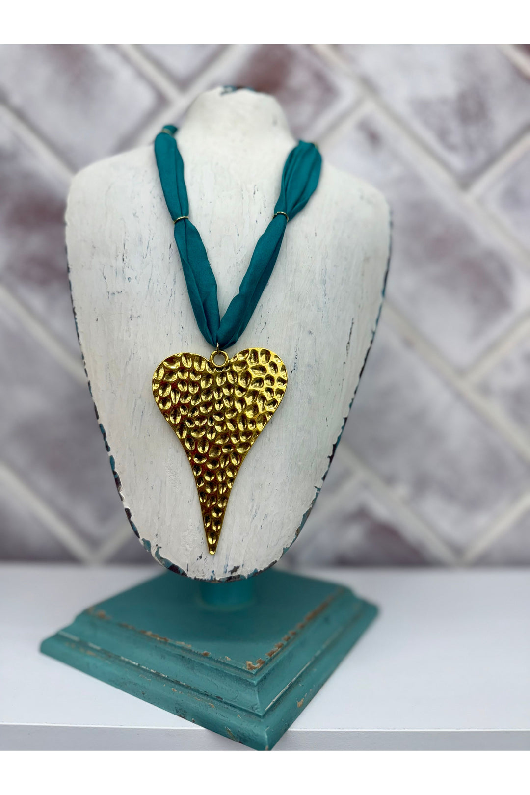 Teal Heart Scarf Necklace