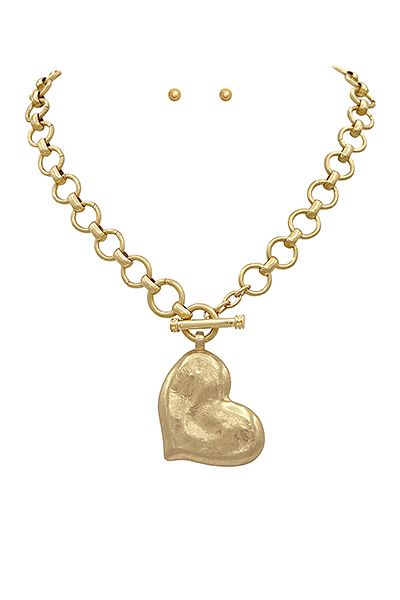 Textured Heart Necklace Set