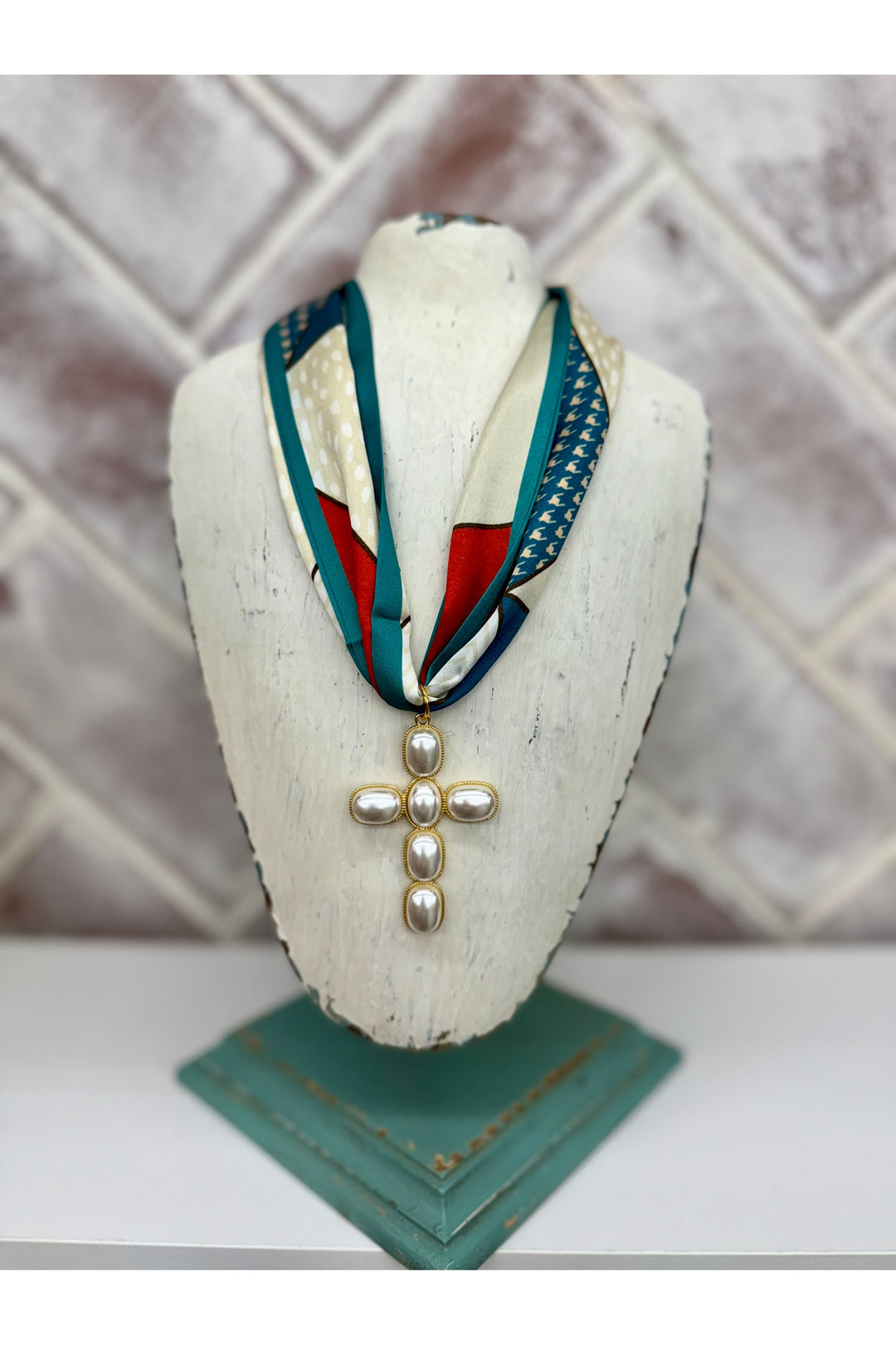 Pearl Cross Scarf Necklace