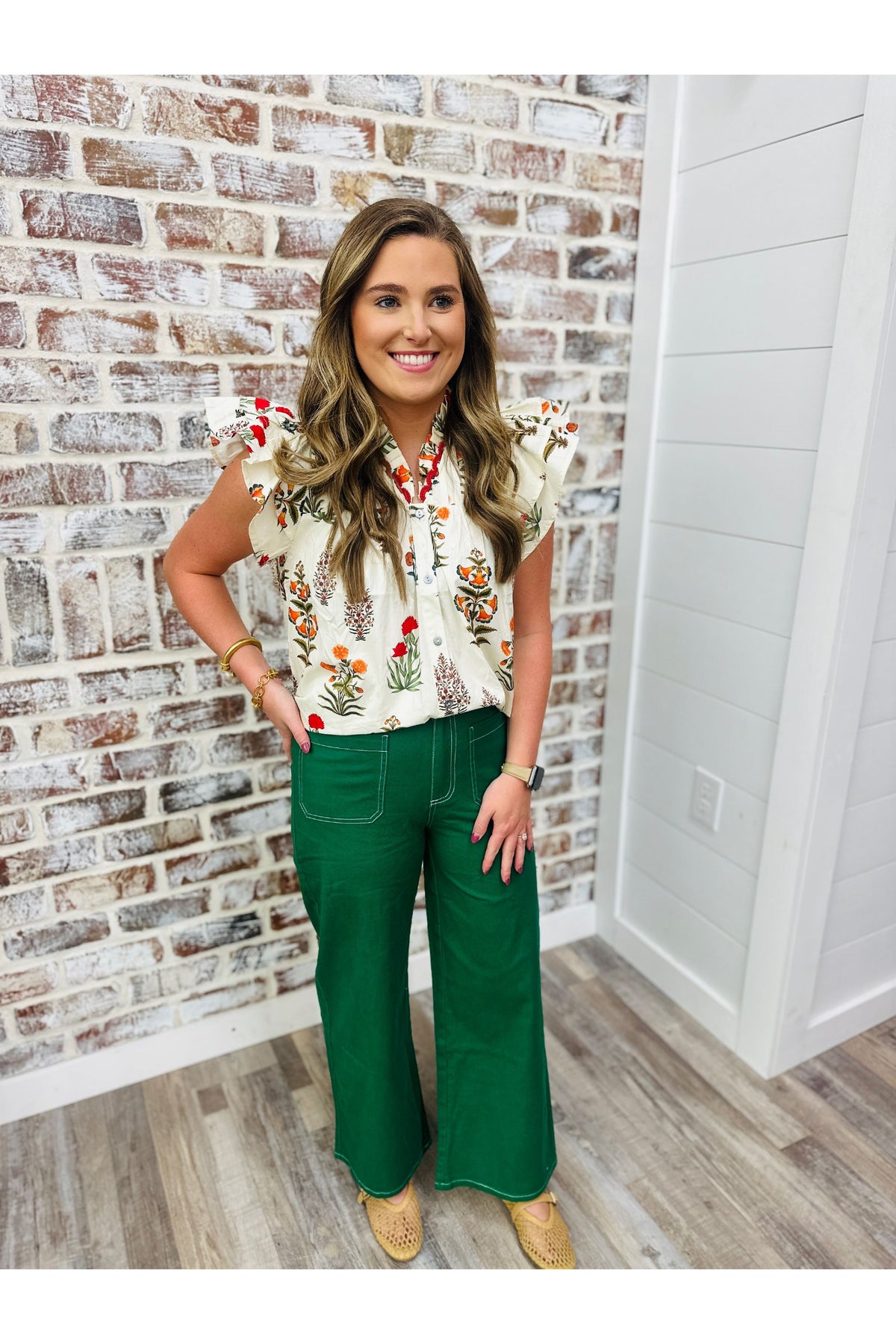 Introduce the latest fall trend with our Botanical Flutters Top, crafted with 100% cotton for a comfortable and stylish look. This versatile top is perfect for any occasion, providing both fashion and comfort in one piece. Stay on-trend with this must-have addition to your wardrobe.