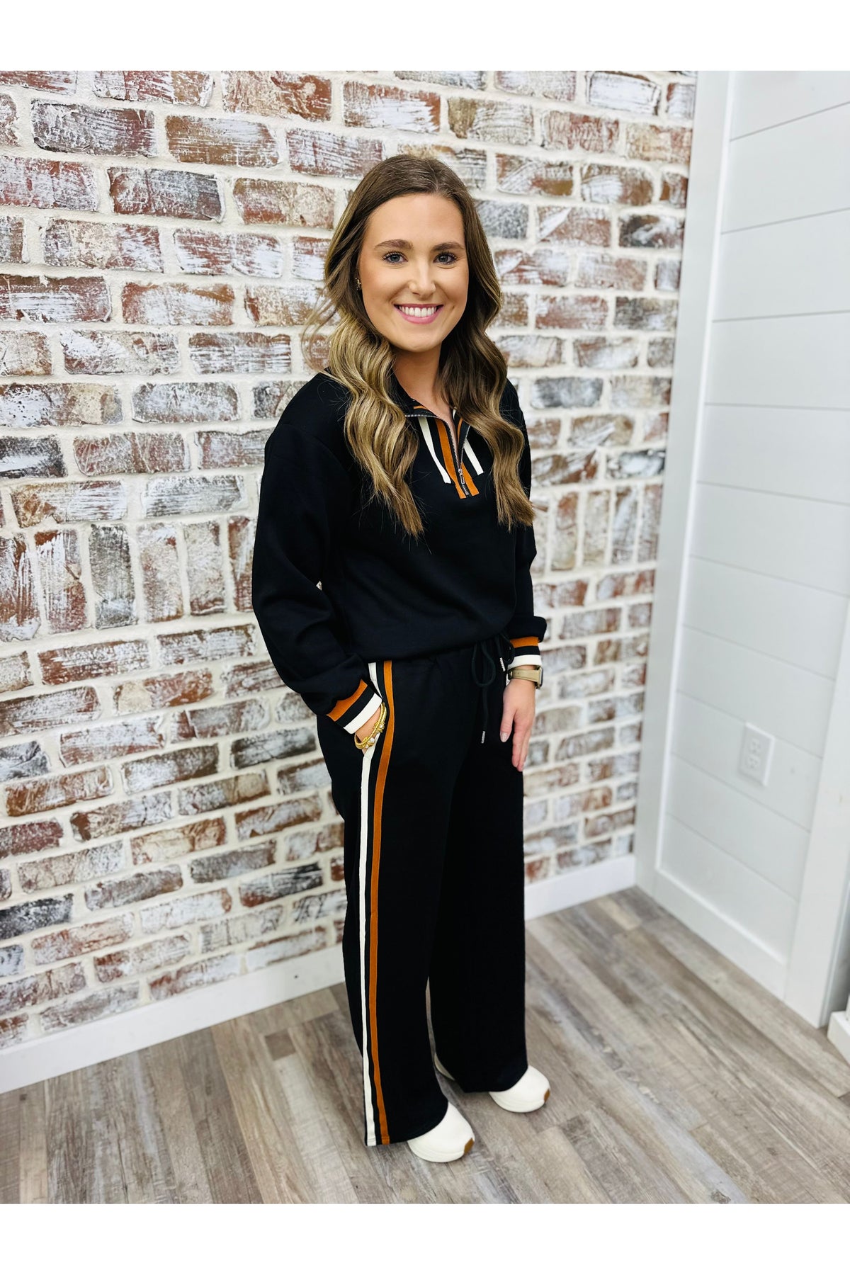 Expertly designed, the Classy & Comfy Set is the perfect blend of style and comfort. The black color with neutral stripes adds a touch of elegance to any outfit. Experience the combination of style and comfort with this versatile set.