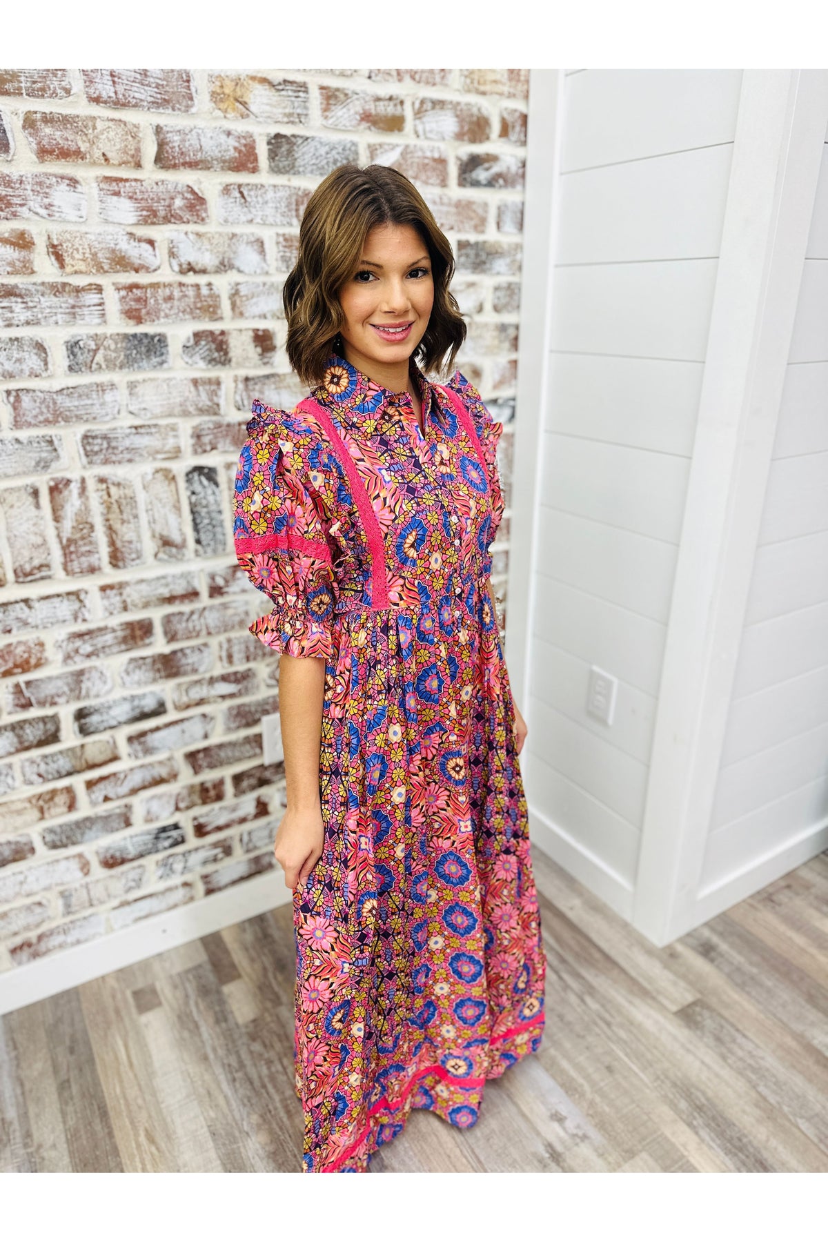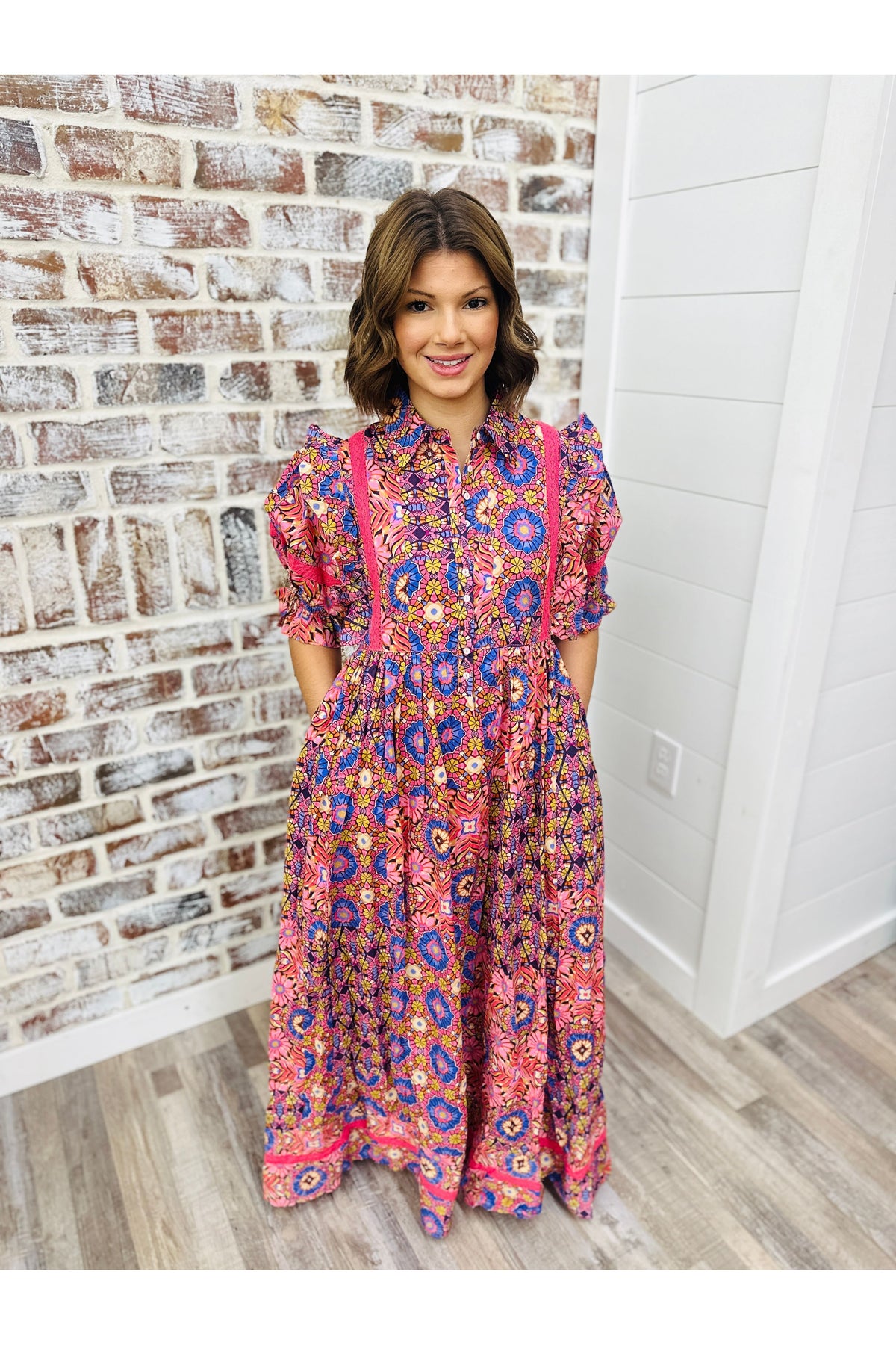 Elevate your style with our KARLIE |KALEIDOSCOPE PUFF SLEEVE TIER MAXI DRESS. The playful puff sleeves and tiered design create a unique, eye-catching look. Made with high-quality materials, this dress offers both comfort and fashion for any occasion.