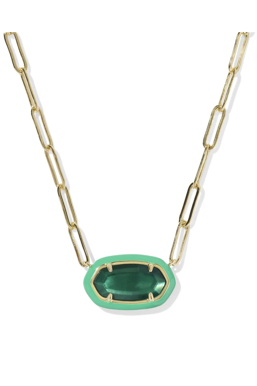 Kendra Scott | Elisa Enamel Frame Gold Paperclip Necklace Emerald Illusion