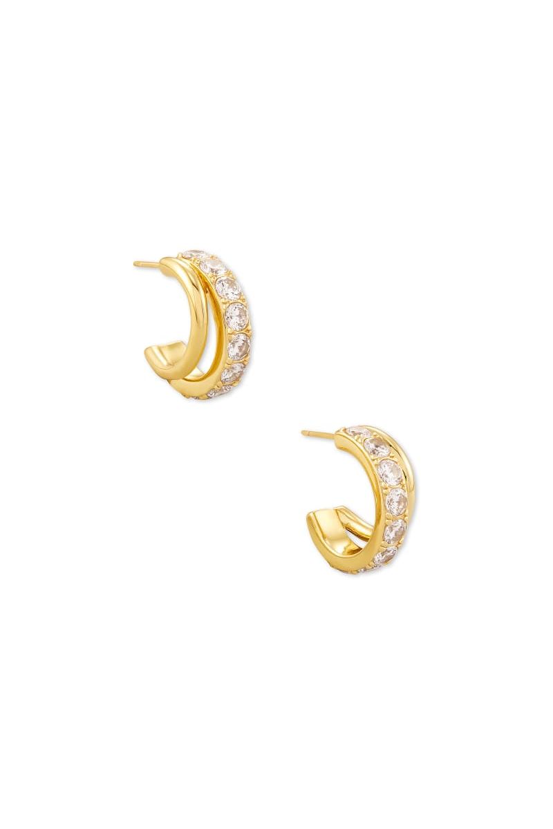 Kendra Scott | Livy Gold Huggie Earrings in White Crystal