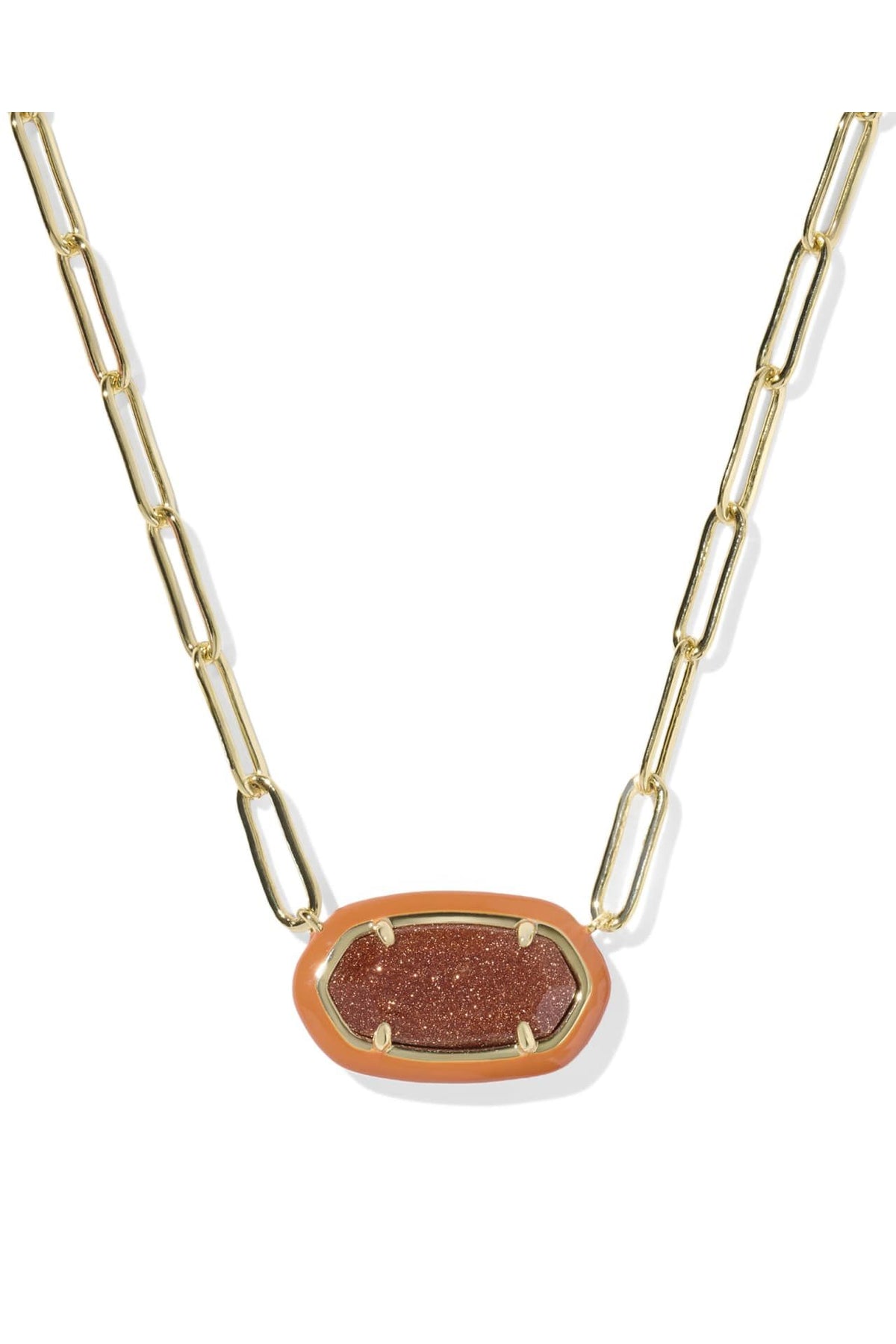 Kendra Scott | Elisa Enamel Frame Gold Paperclip Necklace Orange Gemstone