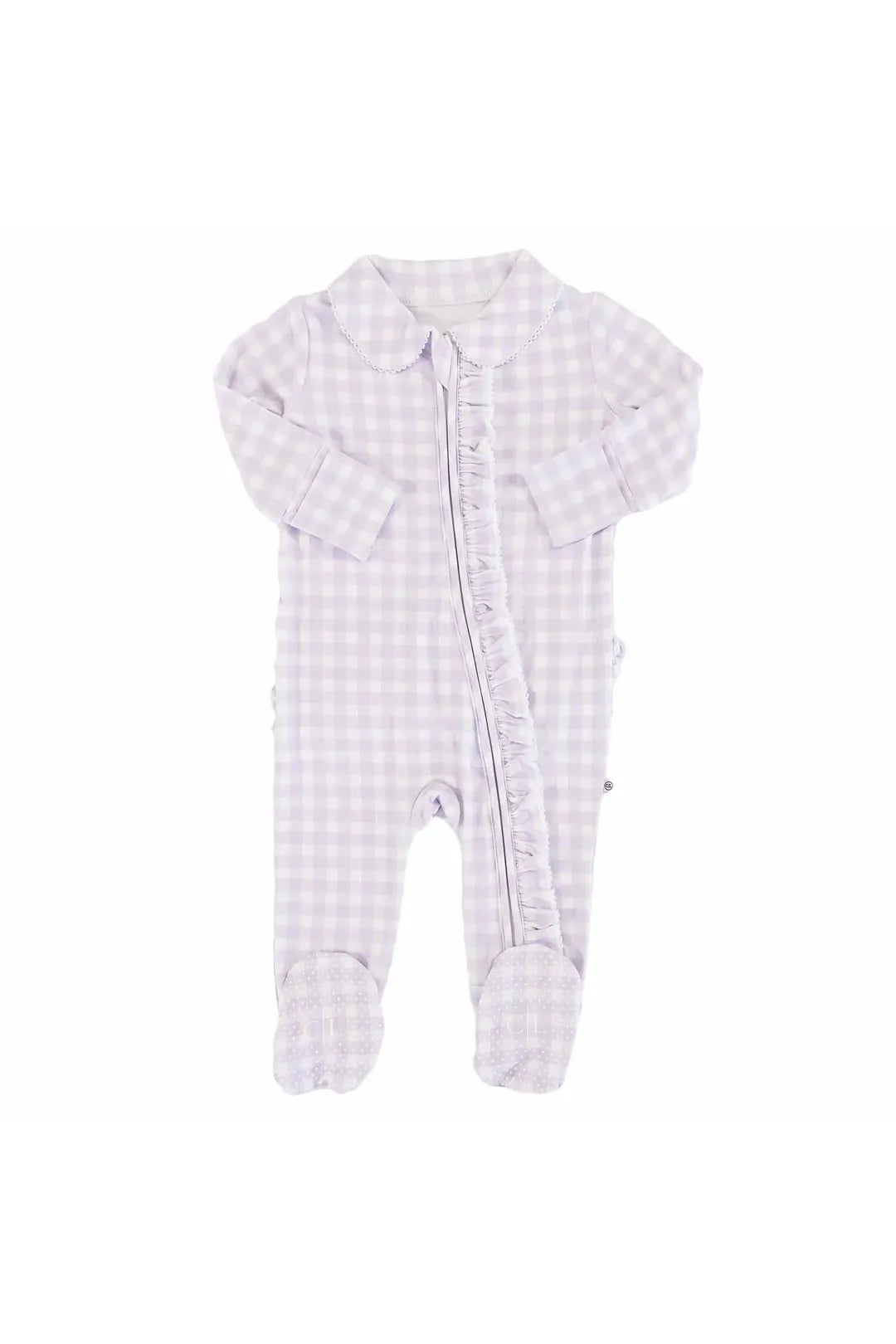 Peter Pan Collar Ruffle Zipper Footie - Lilac Gingham