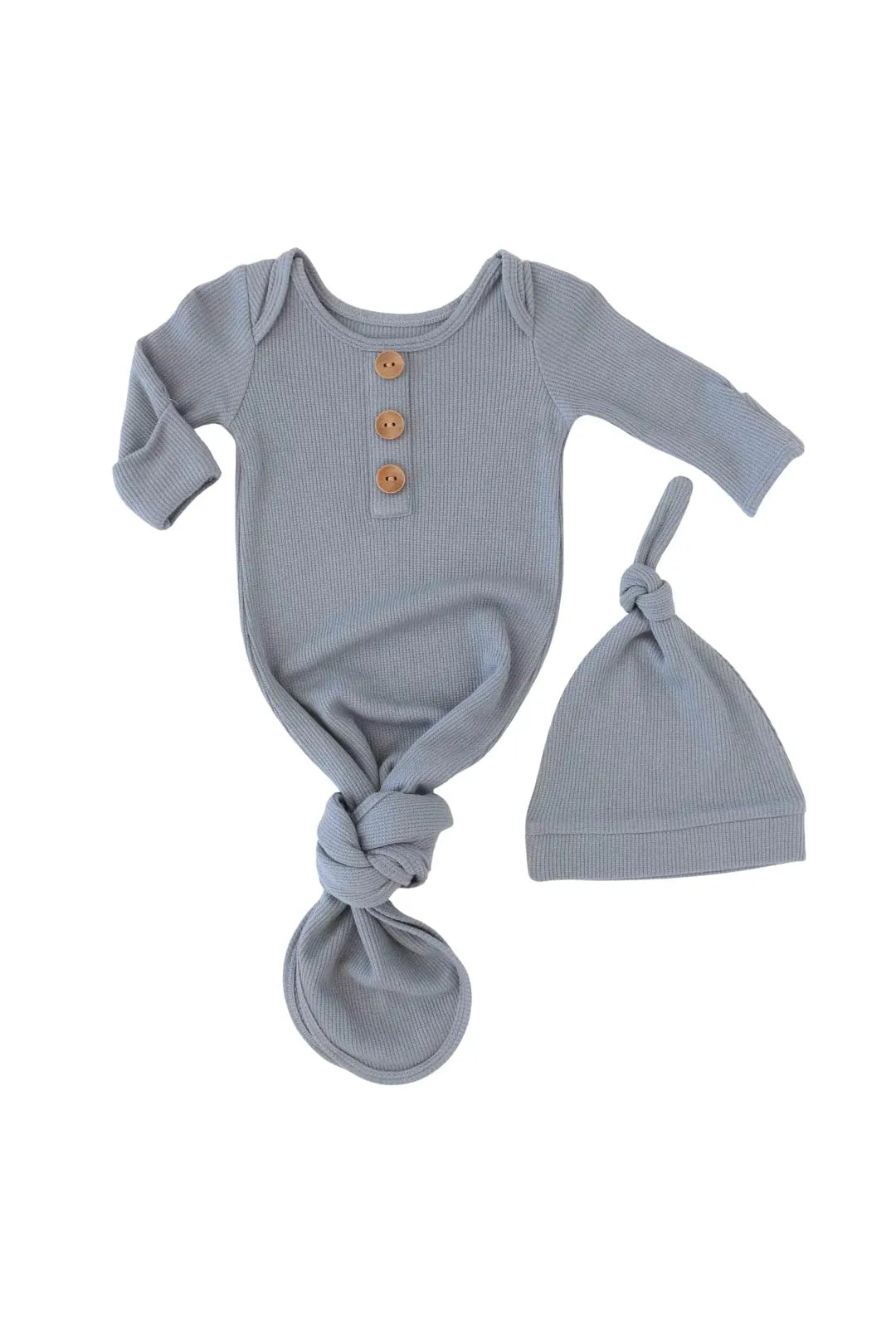 Dusty Denim Bamboo Waffle Baby Gown & Hat