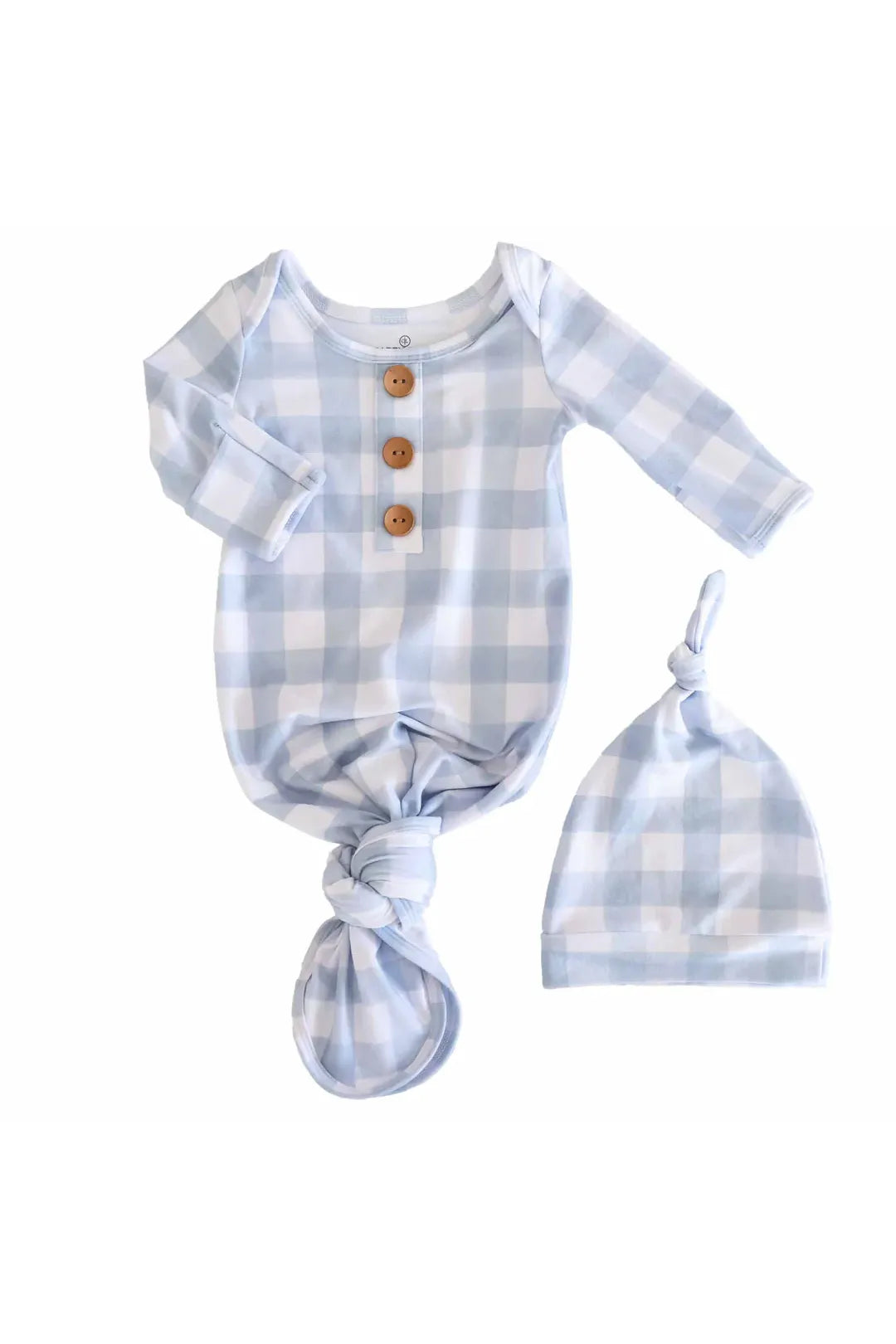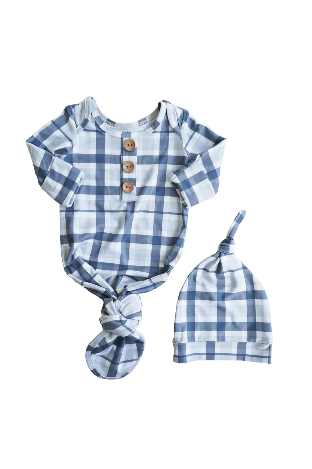 Dusty Blue Gingham Baby Gown With Hat