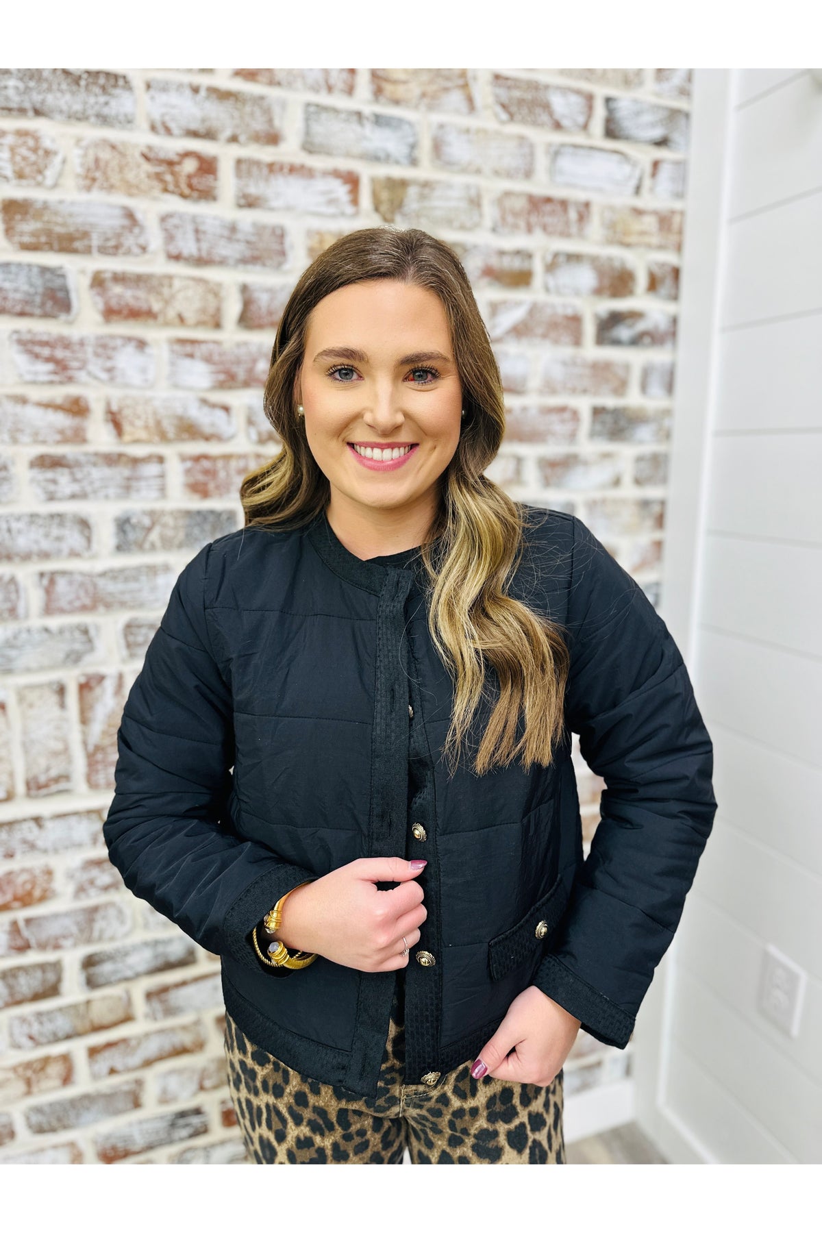 Stay stylish and comfortable with our Fancy Black Quilted Jacket. Made with premium 100% nylon, this lightweight jacket features button details for a touch of elegance. Perfect for any occasion, it's a must-have addition to your wardrobe. Upgrade your look today.