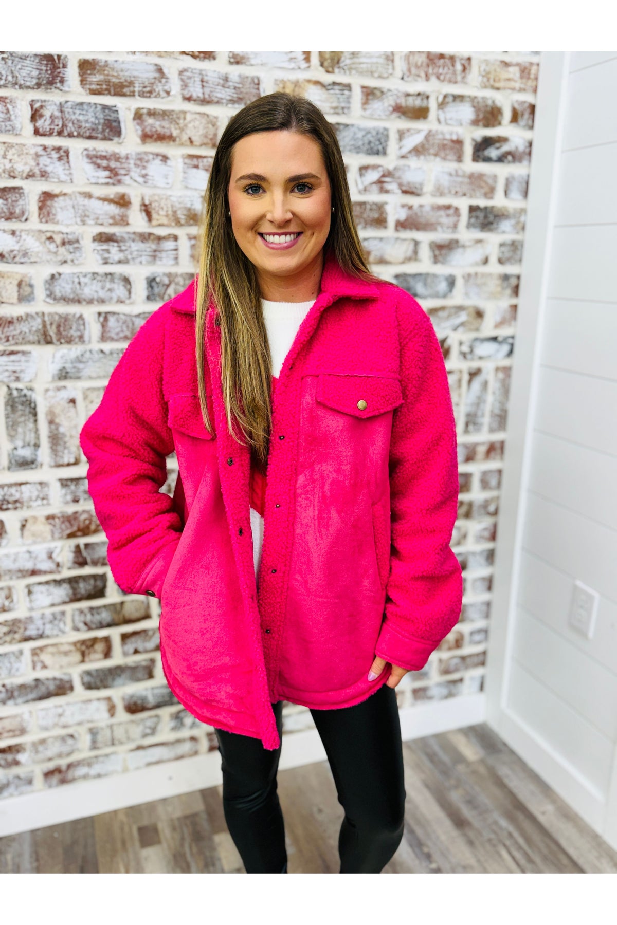 This hot pink jacket is soft, warm, and the perfect pop of color for chilly days.