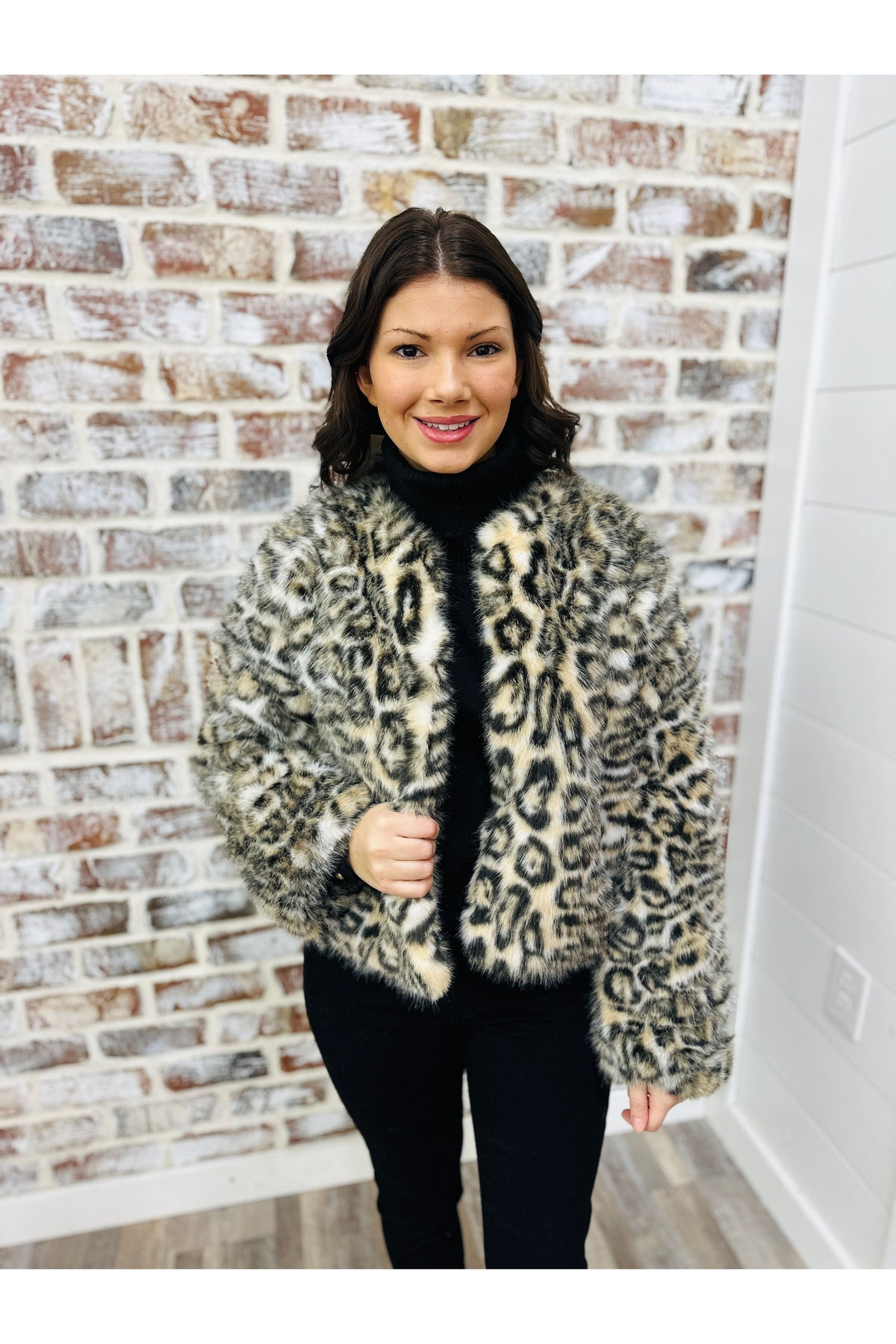 Unleash your wild side with this Leopard Print Fur Jacket! Crafted with faux fur, this jacket features a playful leopard animal print that will make a statement wherever you go. Ready to add a touch of fierce fun to your wardrobe? This jacket has got you covered!